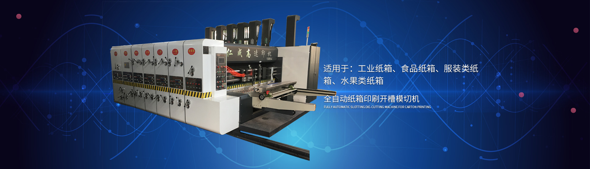 主要產品: 紙箱印刷開槽機, 高速印刷開槽模切機,自動插格機,釘箱機,粘箱機,仁成包裝機械,紙箱機械